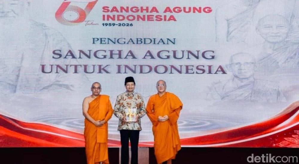 Foto: Nasaruddin Umar menghadiri perayaan Sangha Agung Indonesia bersama para biksu di Jakarta. (Sumber foto: Detik.com)