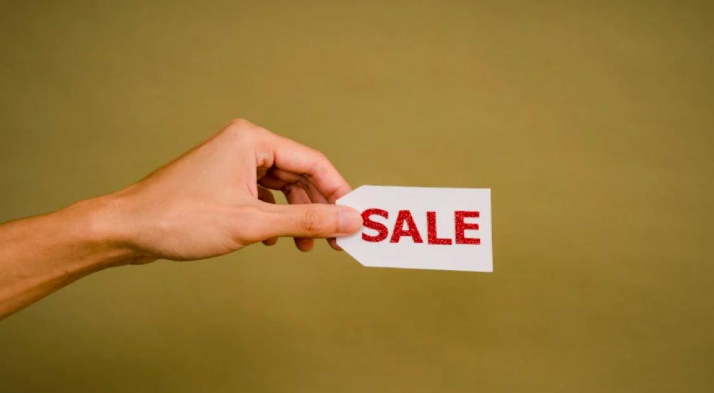 Foto: Ilustrasi/Tangan memegang kartu bertuliskan “SALE” yang melambangkan promo atau diskon penjualan.