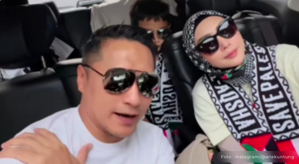 Melalui Instagram pribadinya, Arie Untung mengunggah dokumentasi perjalannya bersama dengan istri, Fenita Arie dan anaknya untuk ikut aksi bela Palestina di Monas.
