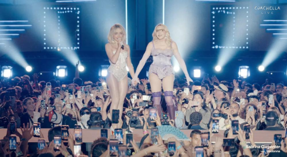 Foto: Penyanyi pop Madonna tampil bersama Sabrina Carpenter di panggung Coachella Valley Music and Arts Festival 2026 (Sumber foto: Coachella Live).