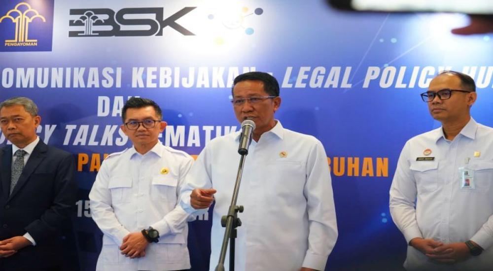 Foto: Menteri Hukum (Menkum) Supratman Andi Agtas memberikan keterangan kepada media dalam konferensi pers di Jakarta, Senin (15/9/2025). (Foto: Kementerian