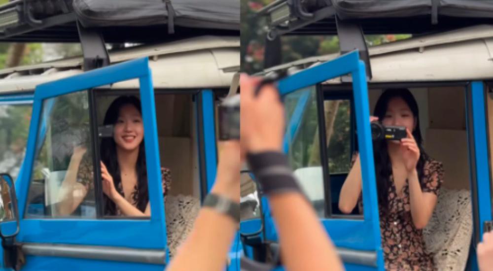 Kim Go Eun juga menunjukkan video dirinya berpose yang direkam dari dalam mobil berwarna biru. Rekan Kim Go Eun juga memperlihatkan potret Kim Go Eun berpose di depan kedai kopi lokal bernama Sunda Hejo Coffee Garut.